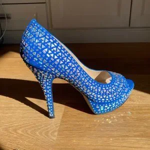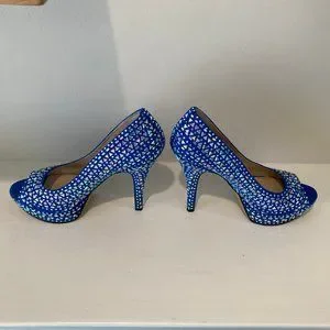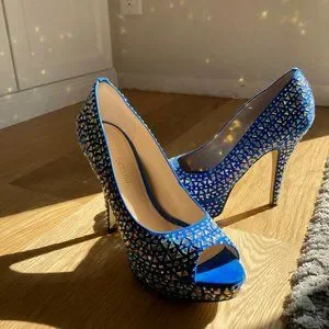 ENZO ANGIOLINI size 8 blue fun embellished platform peep toe heel
