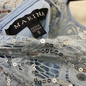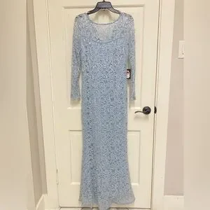 Brand new with tags - got it on final sale but it didn't fit right. There is a hook missing at the top back - pretty easy to add on and a steal for such a beautiful dress! Floor length, bodycon and a stunner with the sequins all over!