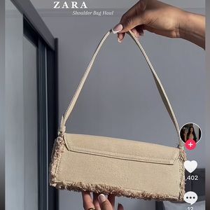 Zara Beige Tan Neutral Fabric shoulder Bag Handbag frayed trim Magnetic flap NWT