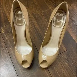 Christian Dior Cannage Beige and Gold Never Worn size 38 Peep Toe Platform