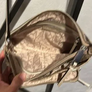 this compact vintage crossbody bag features subtly textured water resistant material, an all-over monogram design, zip closures, a logo plaque and silver tone hardware.