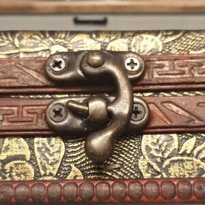 Whether you use it as a vintage mini wooden treasure chest, a jewelry box, or a storage case organizer, this box combines practicality with aesthetic appeal. Its antique style and spiritual significance make it a unique addition to any collection.
