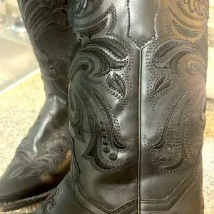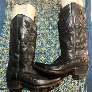 🕵️🕵️🕵️ REPUBLIC OF TEXAS BLACK HANDMADE COWBOY BOOT SIZE 6.5 EUC🕵️🕵️🕵️