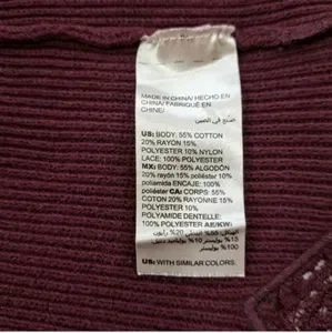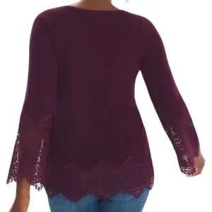 Chico's Women's Long Sleeve Burgundy Blouse/Sweater Ribbed Lace Size 2P …