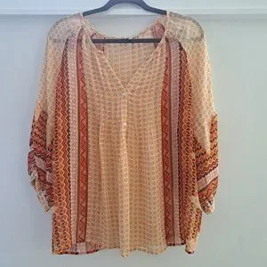 JOIE Orange Abstract Print Semi Sheer V-neck Blouse