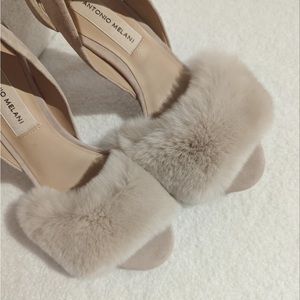 ISO: Antonio Melani Kayleigh Rabbit Fur Ankle Strap Sandals Heels