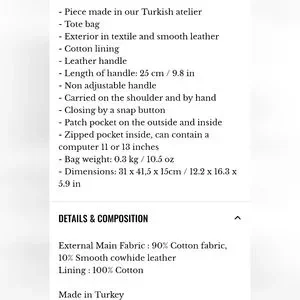 Nwt! Sezane le cabas tote bag in khaki. 90% cotton fabric, 10% smooth cowhide leather handles, 100% cotton lining.