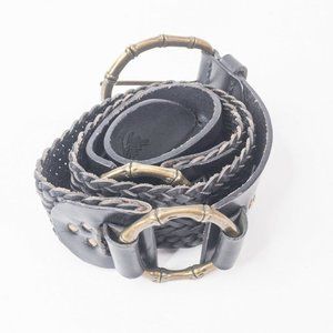 Tommy Bahama Womens Belt Black Medium Large Woven Braided Bohemian O Ring Chain