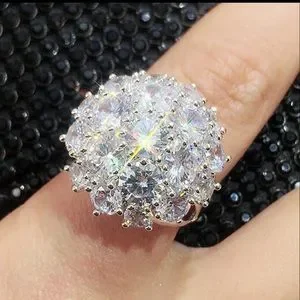 New Luxury 925 Silver Beautiful Flower Diamond Ring