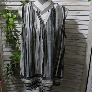 apt 9 sleeveless striped blouse in size large. gently used excellent condition. measurements taken flat: pit to pit 21", length in front 25" length in back 29". (F24).