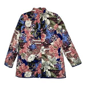 Chico's Reversible Blue Floral-Multi-Colored Floral Quilted Jacket - Size Large