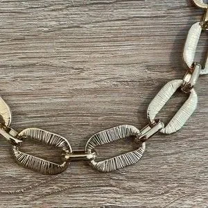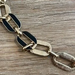 Tags: Gold and Black Statement Necklace | Twxtured | Reversible | Gold | Black | Chain | Links | Costume Jewelry | Copper | Nickel | Free People | Anthro | Anthropologie | Loft | Club Monaco | H&M | Express | Forever 21 | Zara | J.Crew | Francesca’s