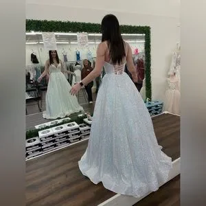 Gorgeous White Corset Back Iridescent Sequin Sherri Hill Prom Dress - Worn Once!