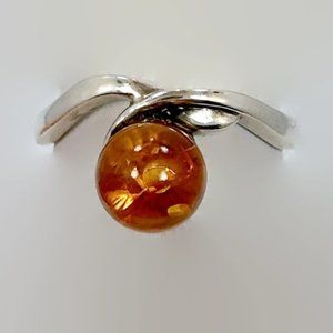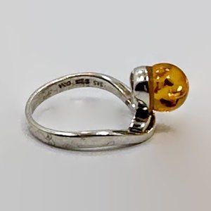 Amber Ring, Sterling Silver, Vintage Ring, Orb Shaped, Size 7 1/2, Honey Amber