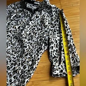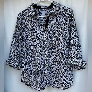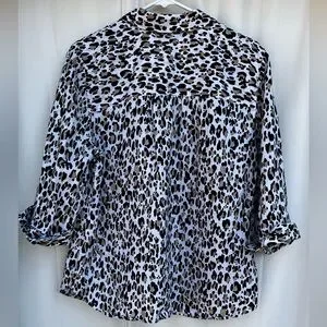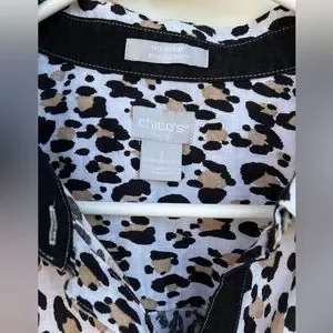 Chico's No Iron Linen Button Up Shirt Size 2 Leopard Print 3/4 Sleeve