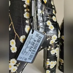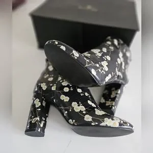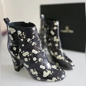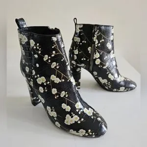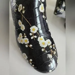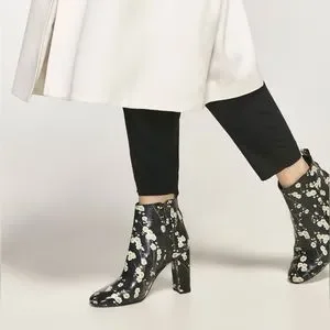 Massimo Dutti Zara Leather Ankle Boots with flowers US 7.5