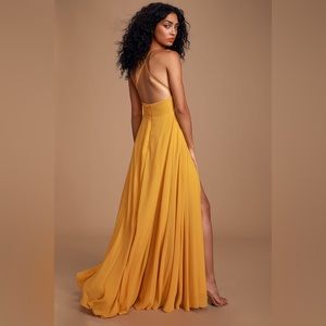 Lulu’s Dreamy Romance Mustard Yellow Backless Maxi Dress