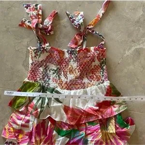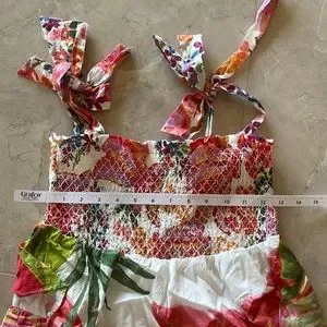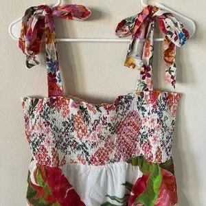 This Farm Rio dress features a vibrant mix of prints