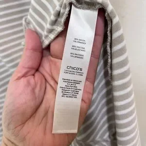 This Chico's tank dress is perfect for any casual occasion. With its multicolor striped pattern and V-neckline, you'll look effortlessly stylish. The pullover closure and sleeveless design make it easy to wear, while the spandex and rayon material with knit fabric type provide a lightweight and stretchy feel.