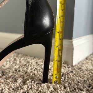 Gently used, Stuart Weitzman nudist heels in black leather size 8. Only worn a couple times, still in great condition and a great price for a timeless shoe. Only comes with dustbag. Few minor dents and scratches in the leather. 4” heel.