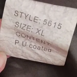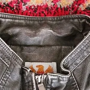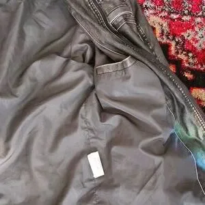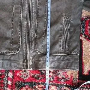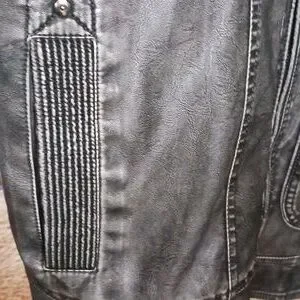 Honestly this was never worn. There is crackling slight peeling in the PU on interior of neck from Hanging up. The color is like a washed Black slight Gray to it. Interior pocket. 4 front pockets. Very soft and folds up nicely. Meaning not stiff nor sticky.