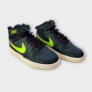 Nike Court Borough Mid 2 in Navy Blue, with eye catching neon green detail.