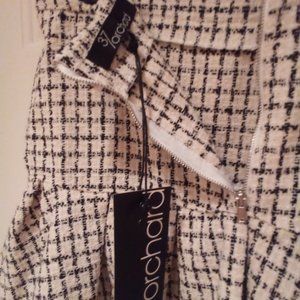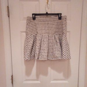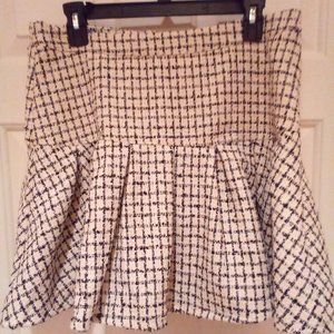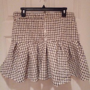 Box pleat black and white tweed fabric. Really cute with back silver zipper.