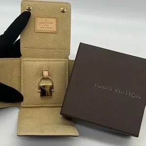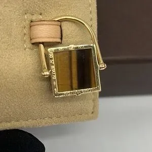 Louis Vuitton NWB Vintage 18K Yellow Gold Tiger Eye Padlock Shaped Pendant