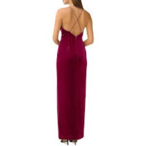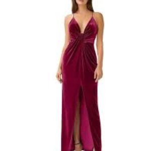 Aidan Mattox pink magenta velvet ruched bow gown dress size 8