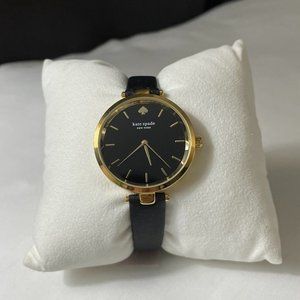 NEW Kate Spade watch gold case black leather strap NWT wristwatch brand new NWT