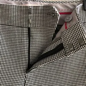 Sloan style cropped ankle length dress pants from Banana Republic in black and white houndstooth print. Back welt pockets. Unlined. Substantial weight stretch material.