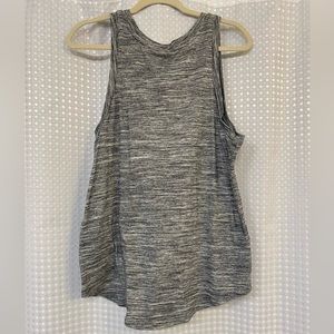 Pink Victoria Secret tank top, heather grey, with brown camouflage in the word “PINK” and dog, size L