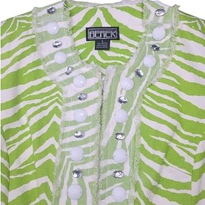 3/$15 🔴 Berek Y2K Lime Green Zebra Print Rhinestone Embellished Blazer Jacket
