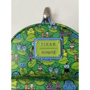 NWT Loungefly Disney Pixar It’s A Bugs Life Mini Faux Leather Green Backpack. Adorable all over bug life print with side pockets and adjustable back straps.