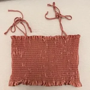 Pink Scrunch Tube Tops with String Ties (Size: Large)