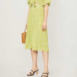 NWT FAITHFULL THE BRAND Marin Checked High-waist Rayon Midi Skirt In Djerra Check