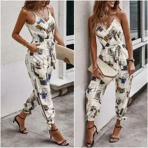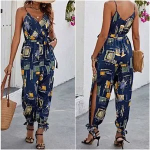 Boho Abstract Print Cut out Leg Cami Jumpsuit
