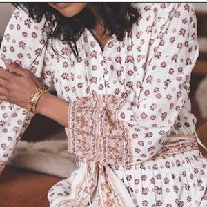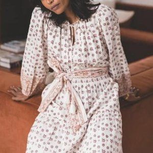 NWT! Cleobella Blakely white floral neutral long sleeve midi dress | L