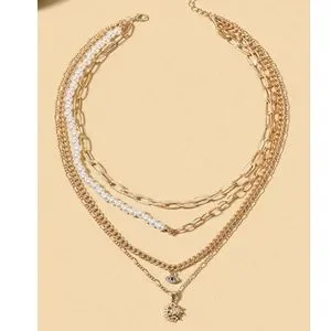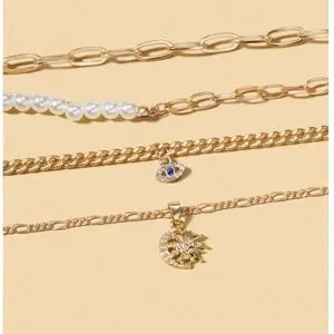Boho Gold Tone Evil Eye Moon Multilayer Necklace