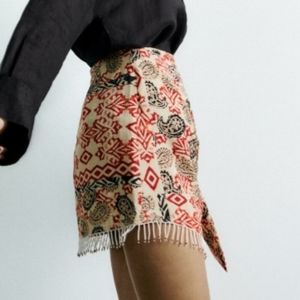 SOLD*** NWT Zara Multicolor Beaded Printed Wrap Skirt Size XS