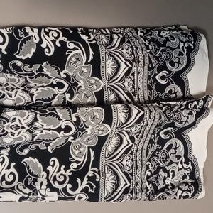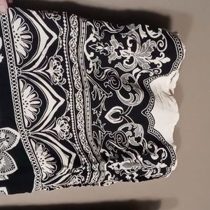 Flying Tomato Black/Cream Wide Leg Rayon Pants w Front Tie L. These have an elastic waist and front tie. These are in excellent condition with no holes or stains.