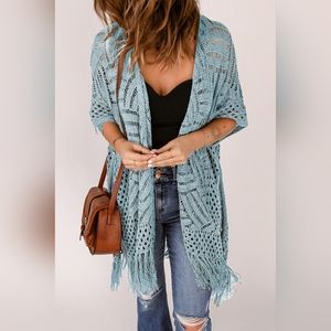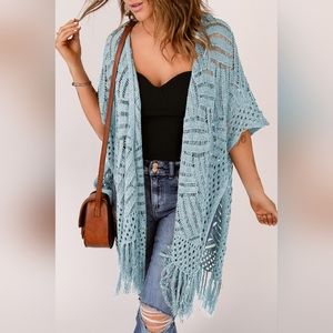 Features: Fringe, Openwork, Misty Blue Color