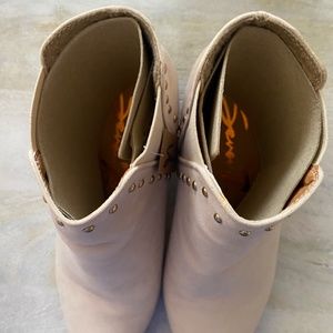 NEW! SEVEN7 PIXIE WOMENS BOOTS CHELSEA WESTERN STYLE STUDS IVORY CREAM SUEDE 9