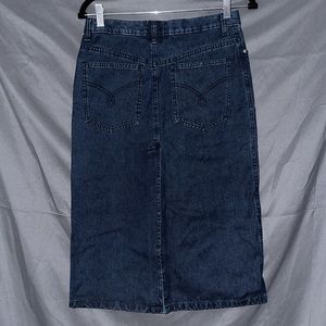 Vintage Moschino denim pencil skirt with high back split. 100% cotton no stretch new with tags in great condition except mission button for the closure. I’m currently looking for a Moschino button but have it repaired but will to sell as is