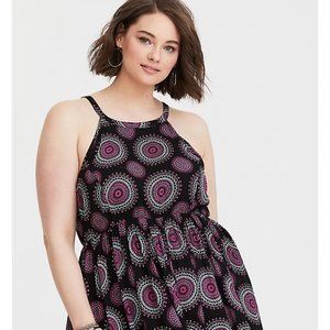 Torrid plus size 4x Medallion Print Hi-Lo Challis Dress black purple and teal