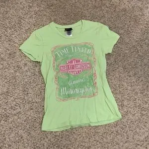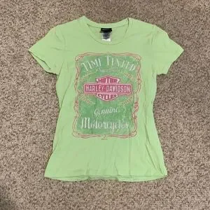 Vtg Harley Davidson mint green pink writing sexy tee shirt sz XS