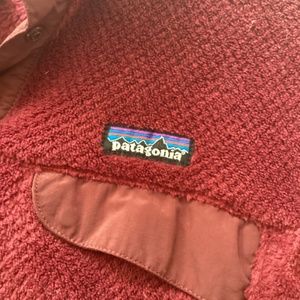 Patagonia Pullover, Re-Tool Snap-T. Size medium, maroon color, well taken care of! From a fragrance free home. Super cozy and warm, great for every day wear or for hiking/camping. 100% recycled polyester. A few minor pills and snags on the hems.
