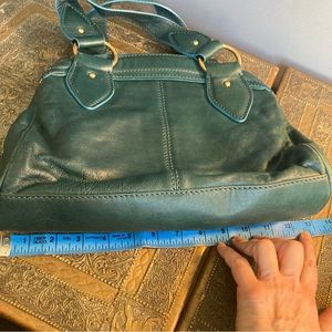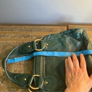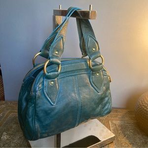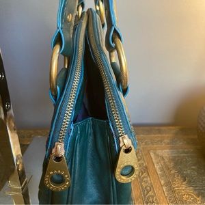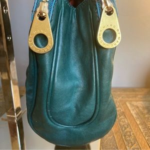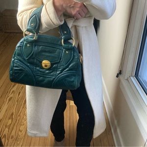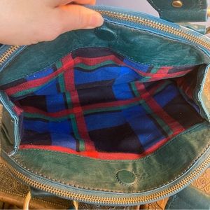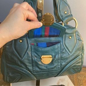 Marc by Marc Jacobs satchel leather plaid lining compartments green gold top handle