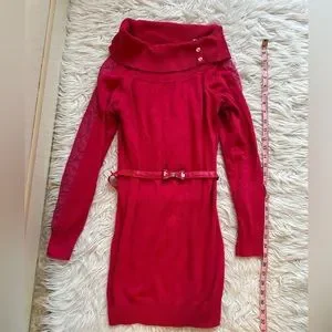 Candie’s sweater dress. Pink. Previously loved. Size XL. Shows signs or wear as pictured. Detachable belt accent. Rhinestones on collar. For size reference I’m 5’5 150lbs