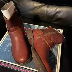 Never worn brown moto boots that are stylish yet practical. They have a rubber bottom which adds to the comfort you will feel while wearing! 💕 Make me an offer